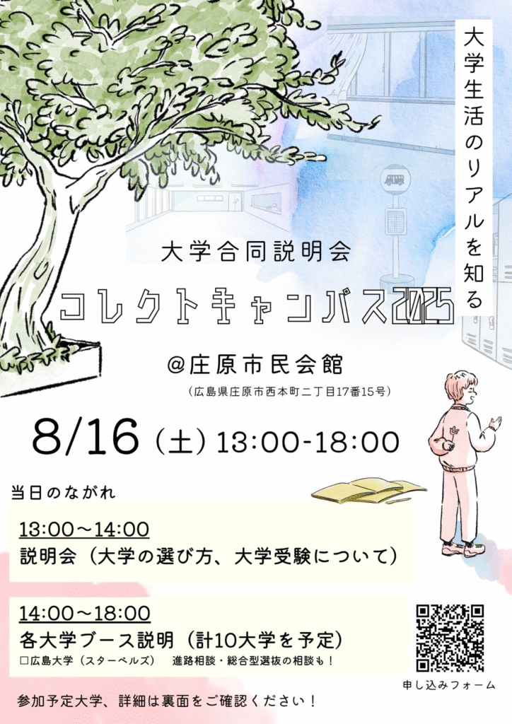 庄原市・三次市の高校生の中には、オープンキャンパスに行きたくても、距離や交通費の面であきらめてしまう人が少なくありません。