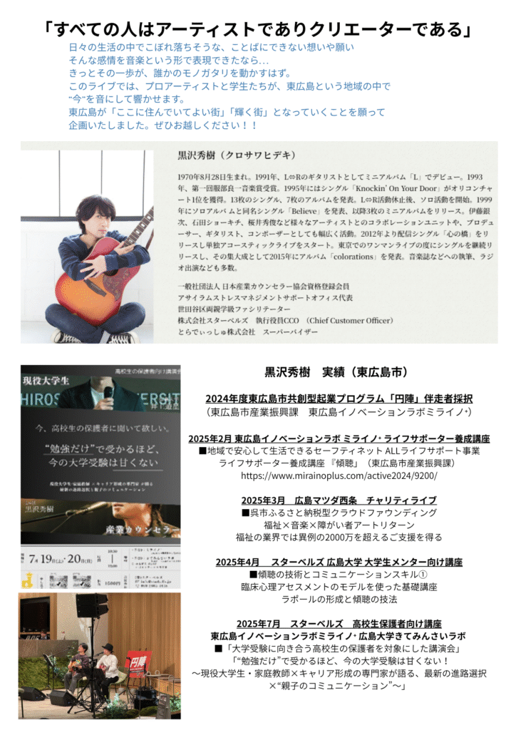 今回は、プロアーティストと学生が東広島の“今”を音にして響かせます。