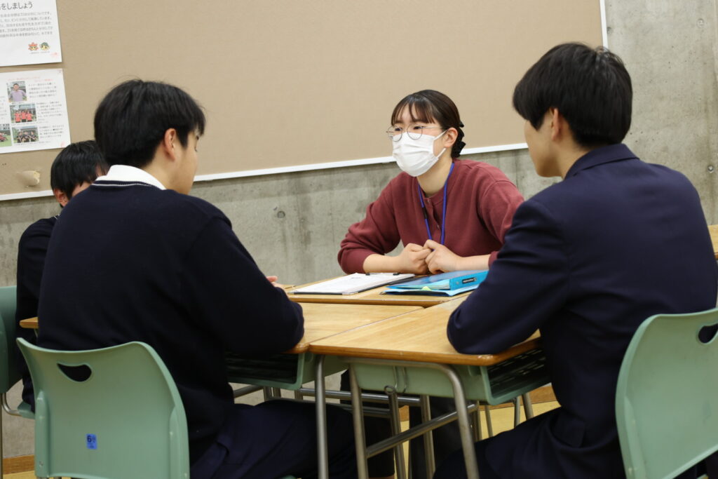 進路に関する話題は、不安や緊張を伴いやすいものですが、普段から自習室で関わっている大学生が相手だったことで、肩肘張らずに話せる空気が自然と生まれていました。