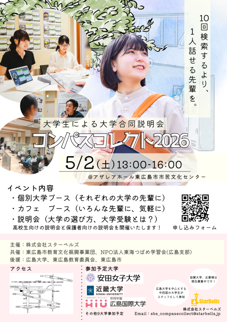 株式会社スターベルズは、2026年5月2日(土)に、高校生および保護者の皆さまを対象とした大学合同説明会 「コンパスコレクト2026」 を開催いたします。
